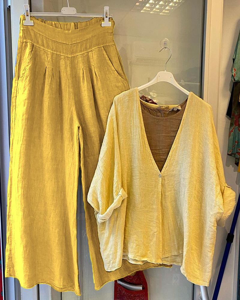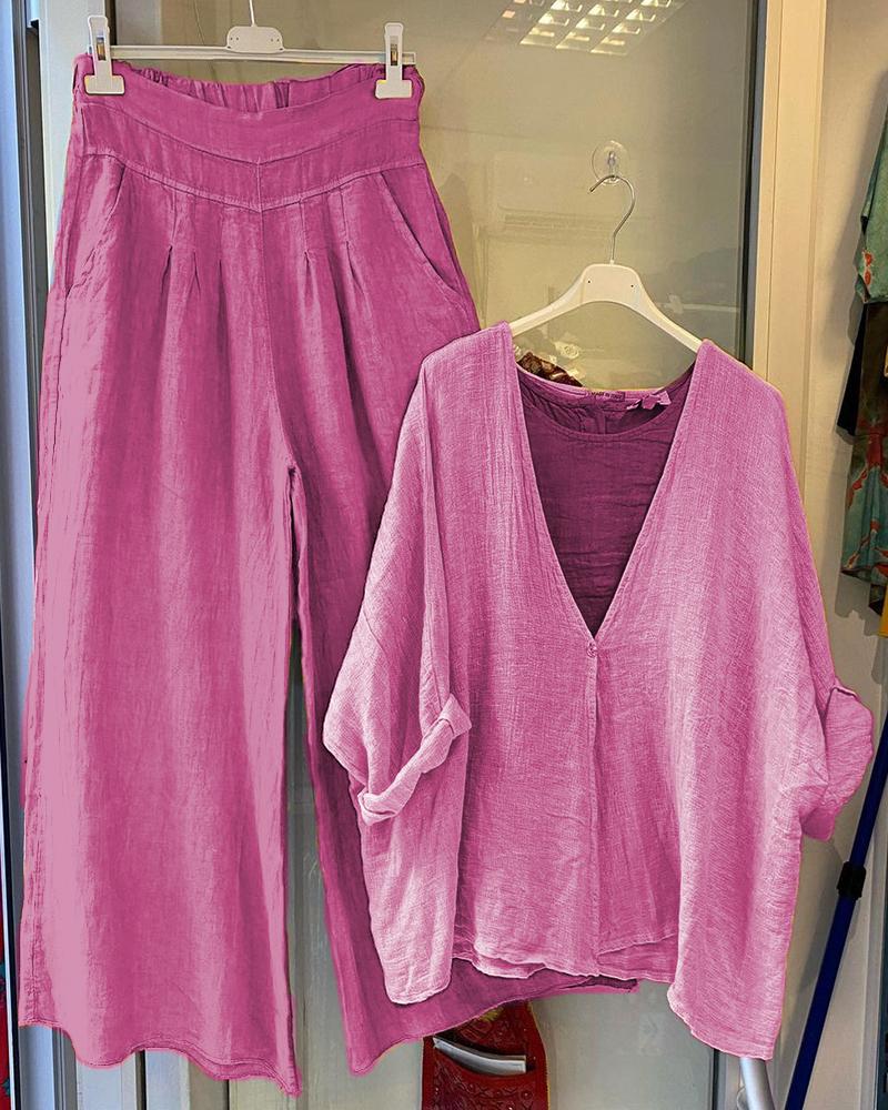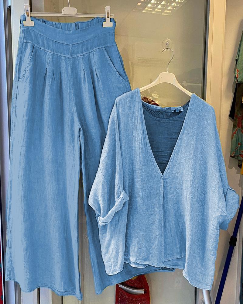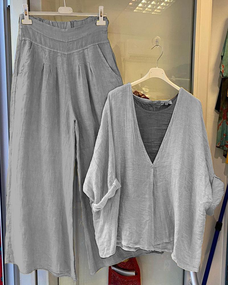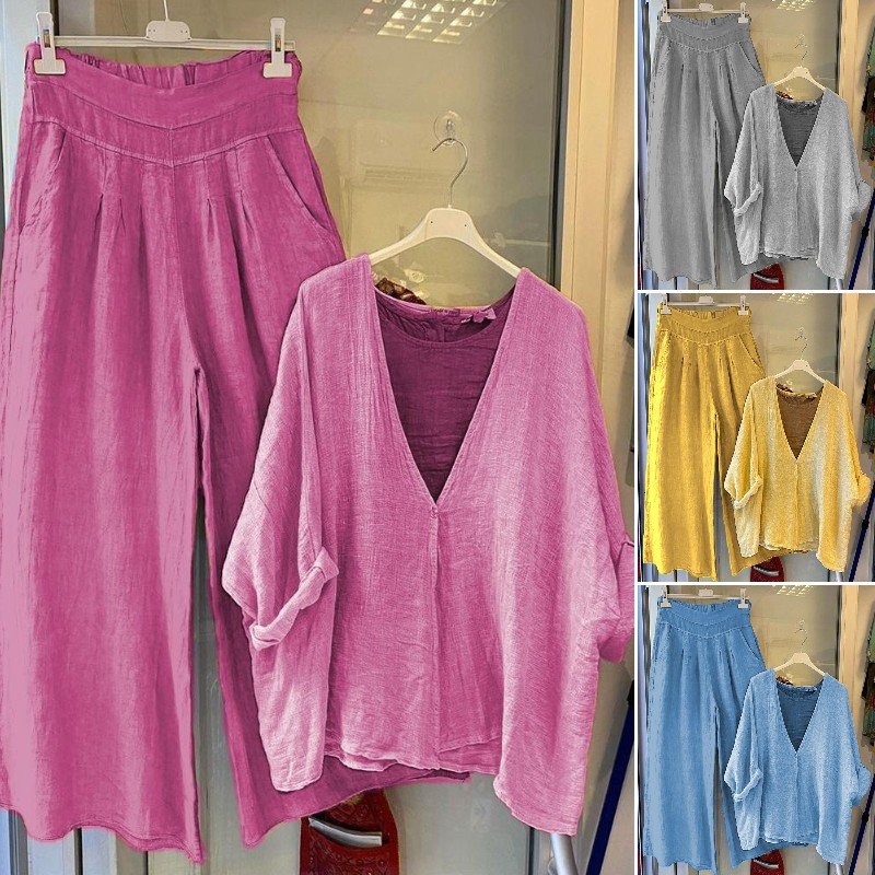 【diskon waktu terbatas】Pakaian baju lengan panjang, celana pinggang elastik kaki lurus, kain kualitas tinggi
