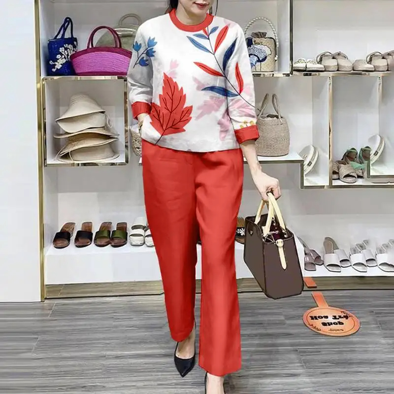 【diskon waktu terbatas】Pakaian baju lengan panjang, celana pinggang elastik kaki lurus, kain kualitas tinggi