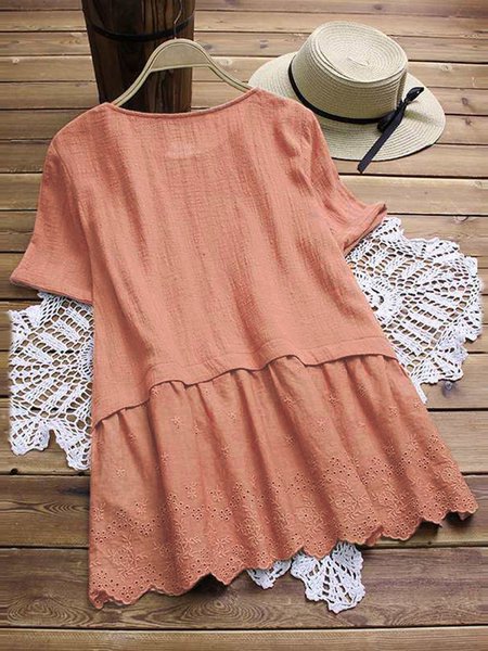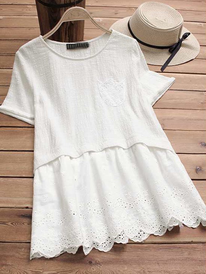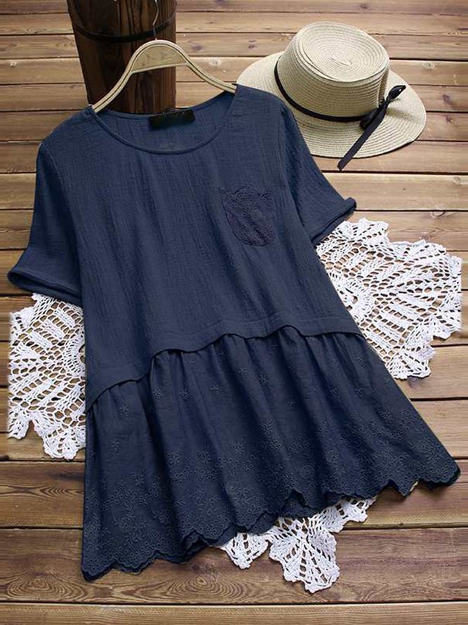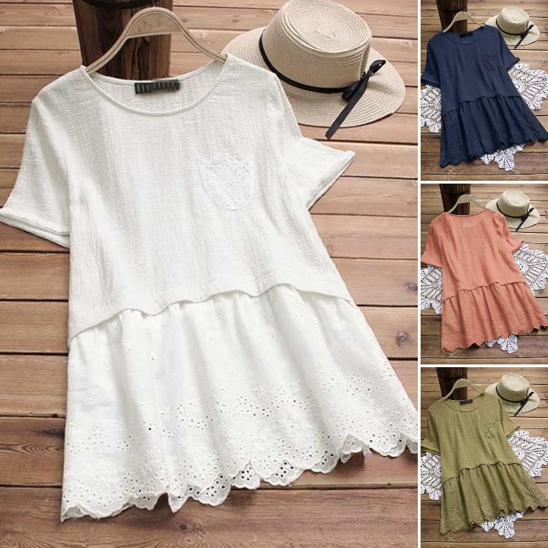 2 Menit LaluAtasan wanita berenda, kemeja kasual lengan pendek dengan saku selvage[Beli Satu Gratis Satu] - beli satu gratis satu