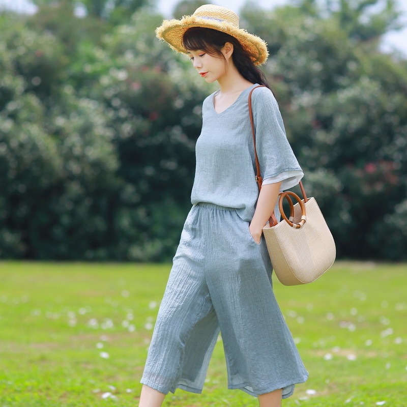 【diskon waktu terbatas】Pakaian baju lengan panjang, celana pinggang elastik kaki lurus, kain kualitas tinggi