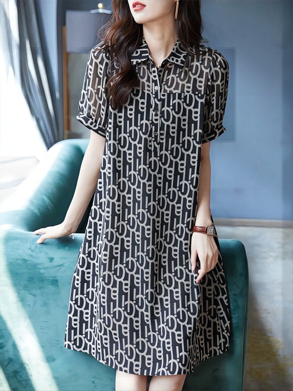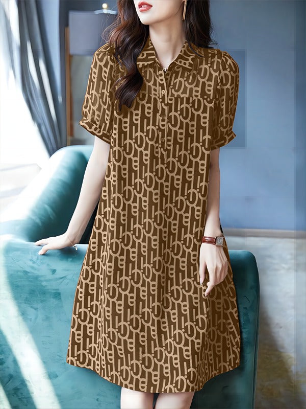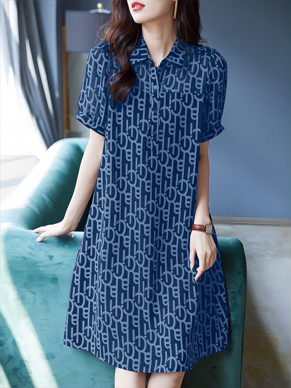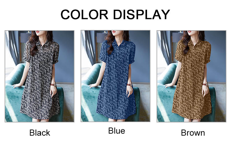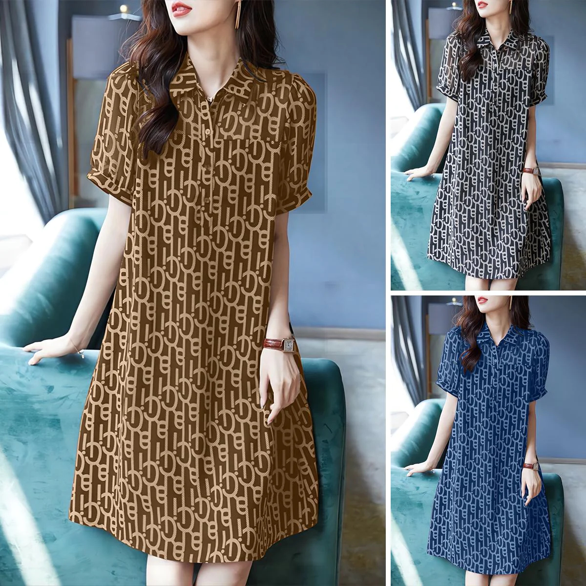 2 Menit LaluGambar Cetak Setengah Tombol Midi Dress - beli satu gratis satu(2 PCS)