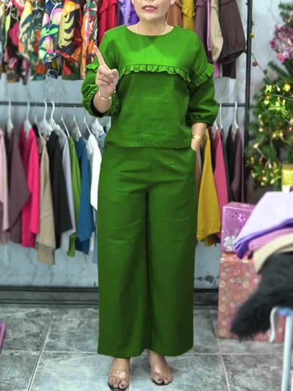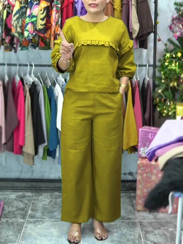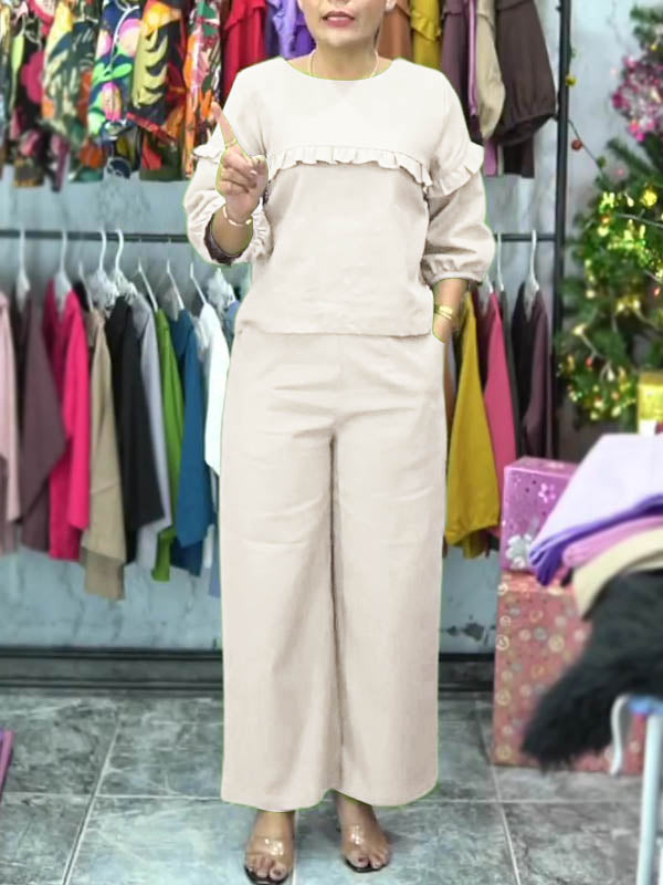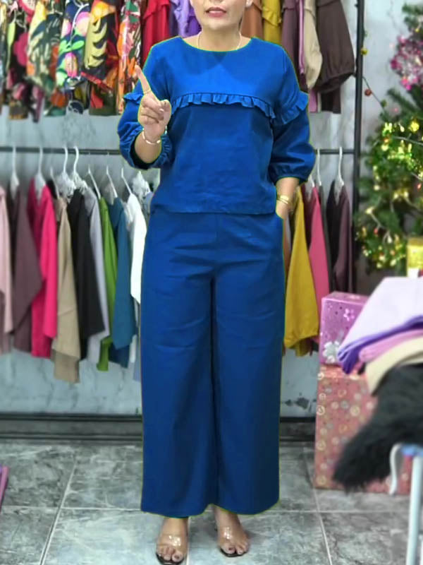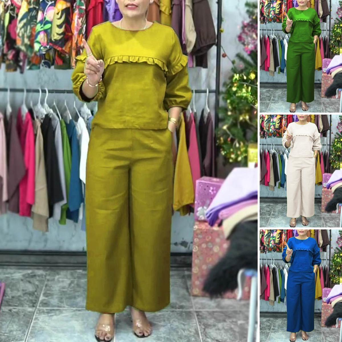 【diskon waktu terbatas】Pakaian baju lengan panjang, celana pinggang elastik kaki lurus, kain kualitas tinggi