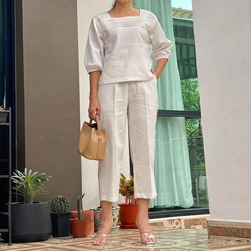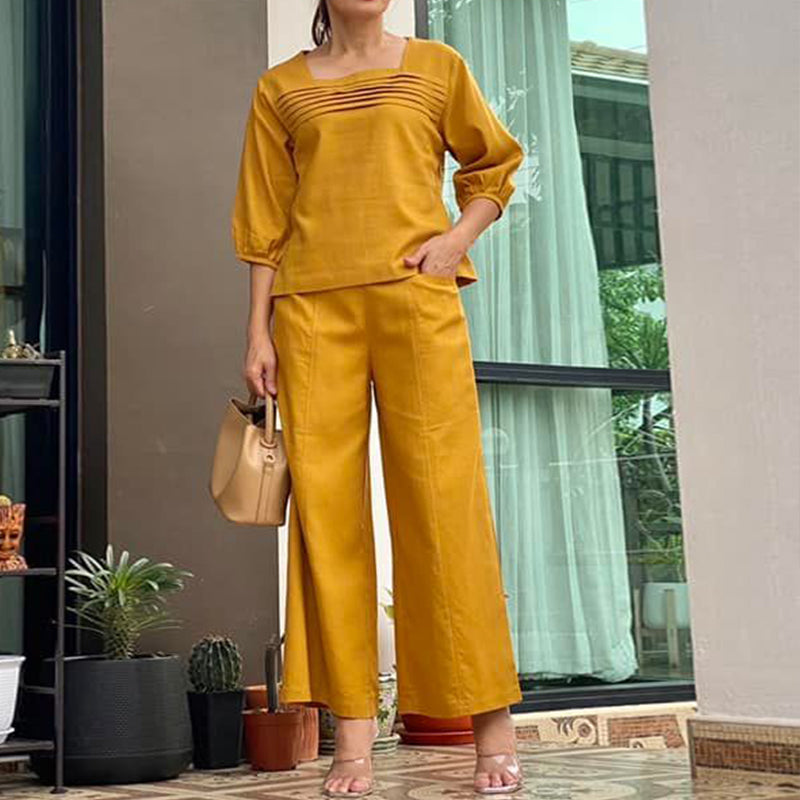2 Menit LaluSet 2 potong celana lebar kaki katun dan linen warna solid gaya Jepang yang elegan - beli satu gratis satu