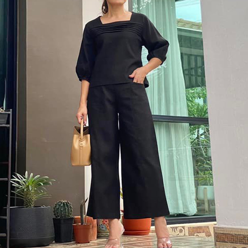 27 Menit LaluSet 2 potong celana lebar kaki katun dan linen warna solid gaya Jepang yang elegan - beli satu gratis satu