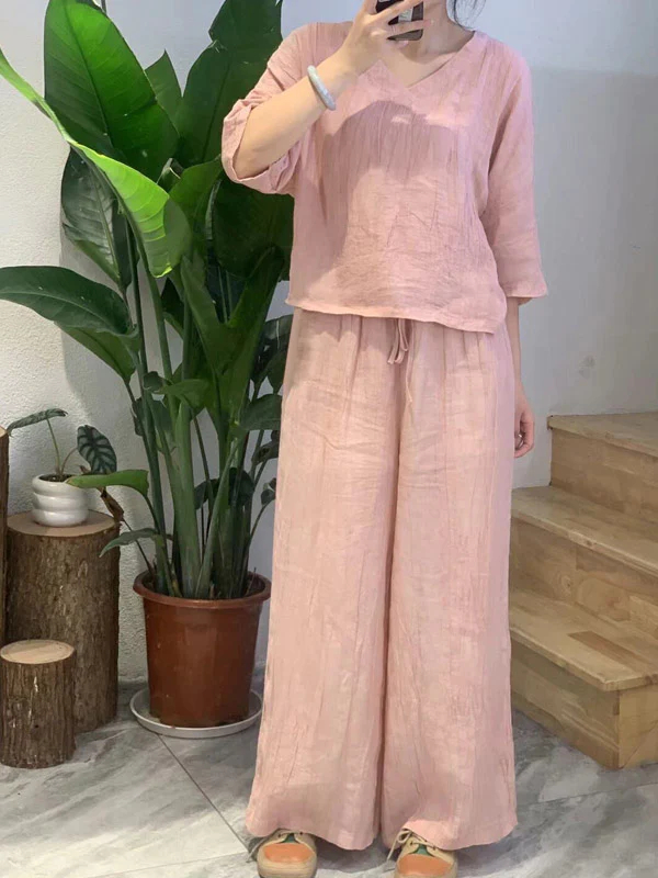 27 Menit LaluSet 2 potong celana lebar kaki katun dan linen warna solid gaya Jepang yang elegan - beli satu gratis satu