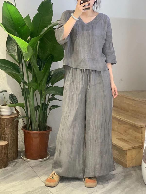 5 Menit LaluSet 2 potong celana lebar kaki katun dan linen warna solid gaya Jepang yang elegan - beli satu gratis satu