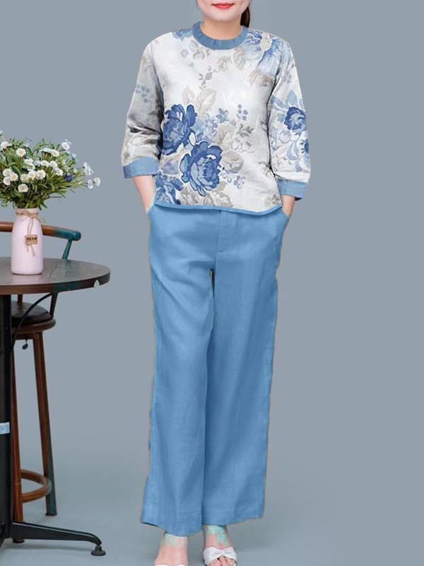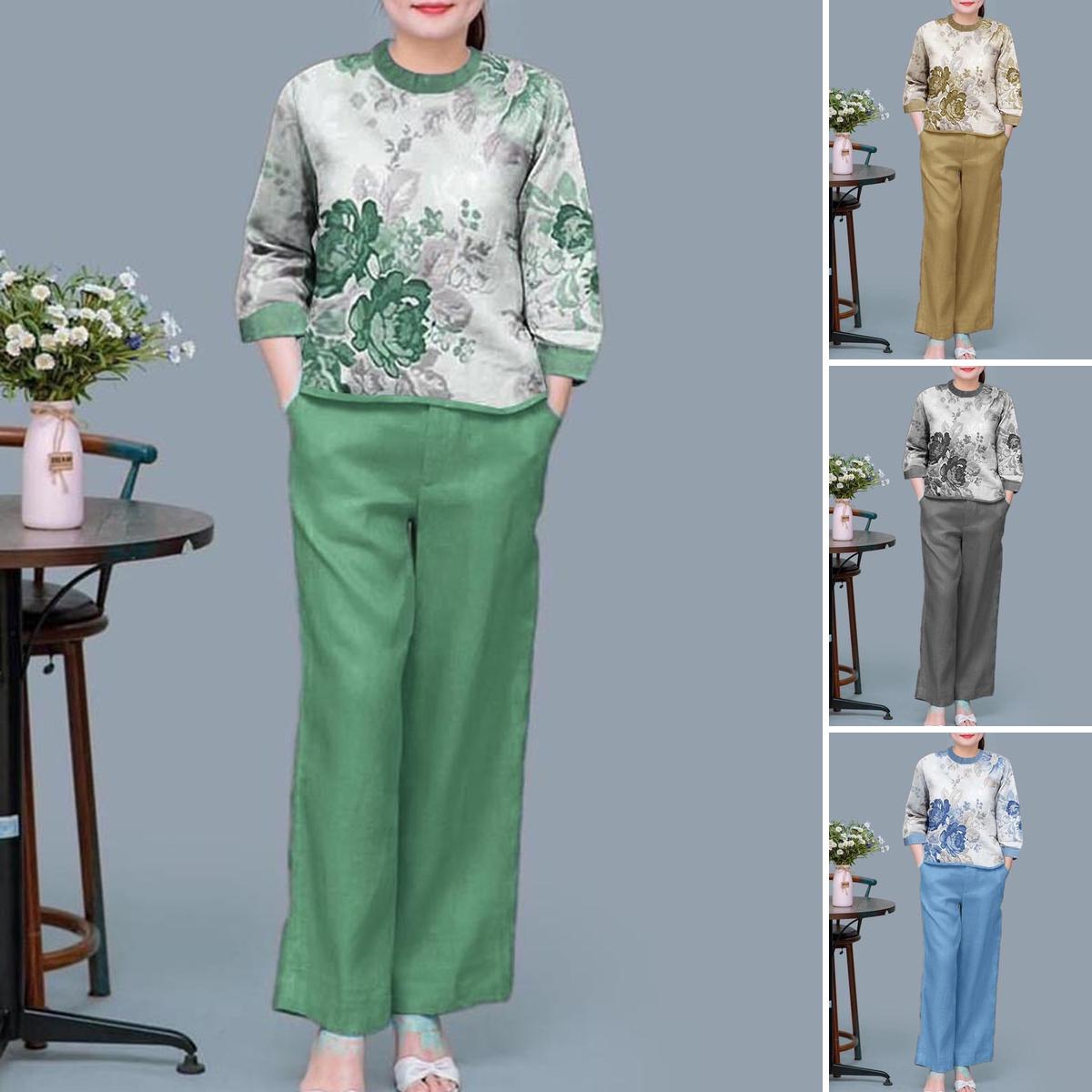 【diskon waktu terbatas】Pakaian baju lengan panjang, celana pinggang elastik kaki lurus, kain kualitas tinggi