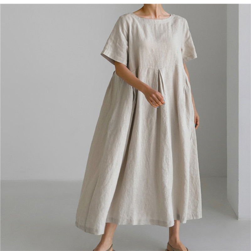 5 Menit Lalu【Beli 1 Gratis 1】Kain katun dan linen,Coton dan linen bernafas, gaun warna solid - beli satu gratis satu(2 PCS)