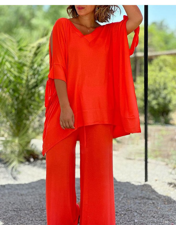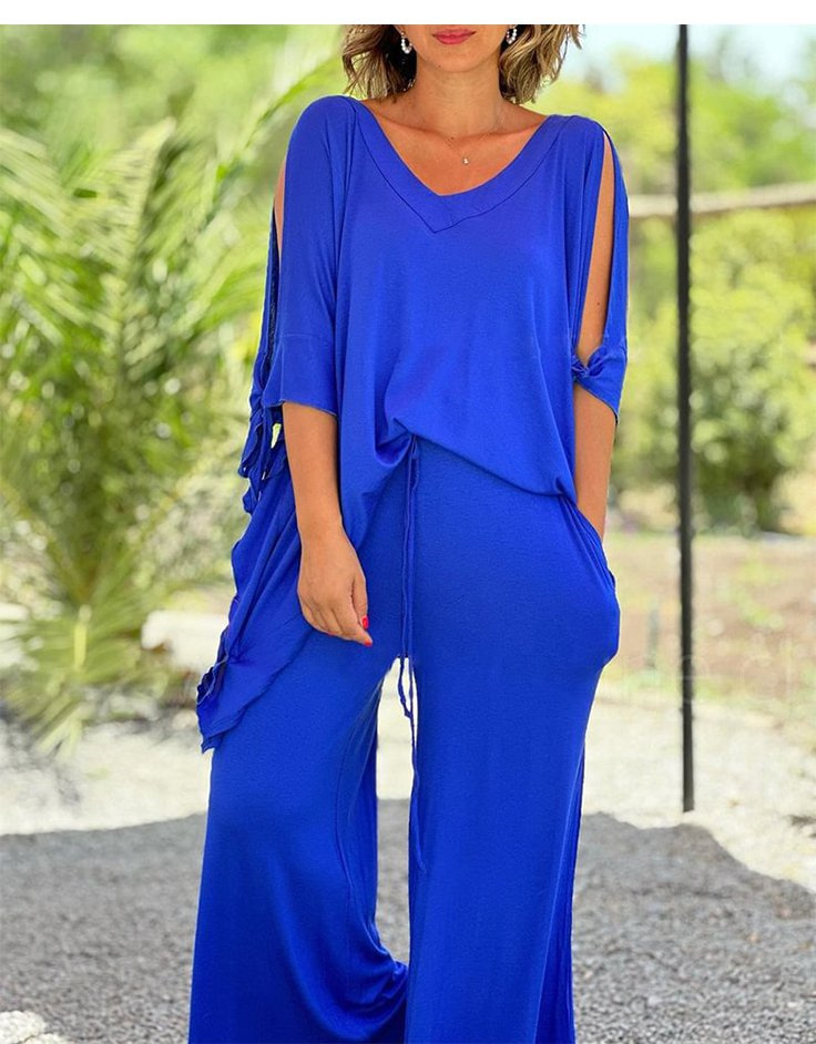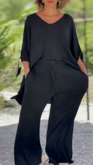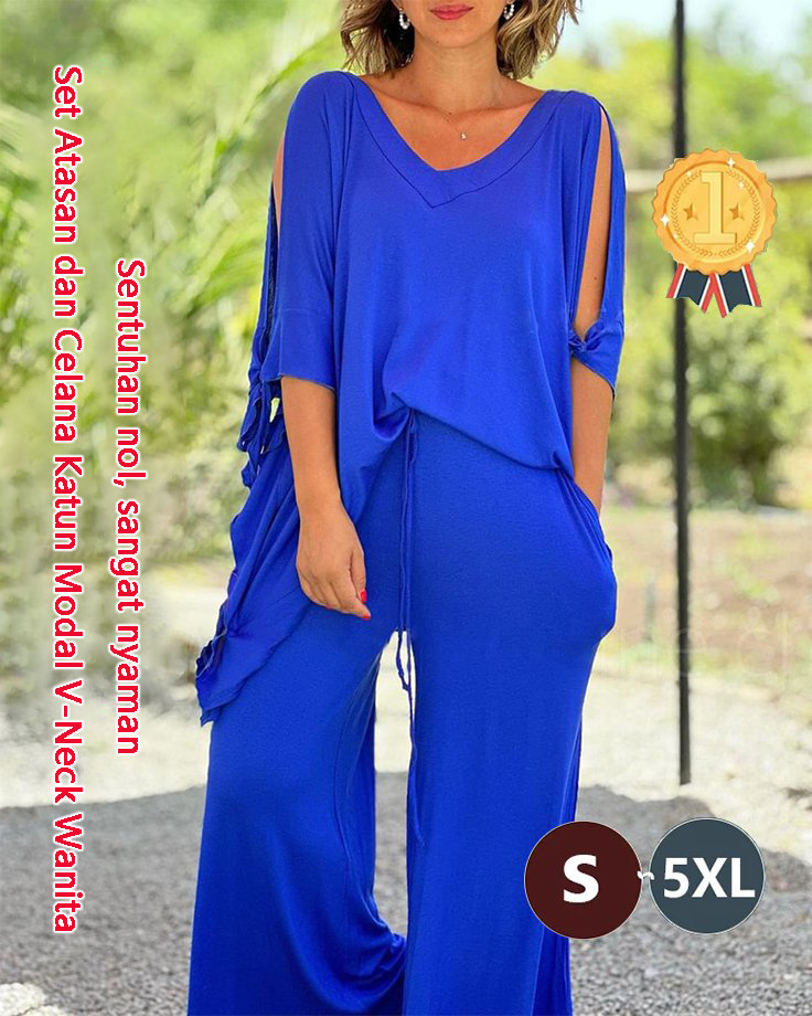2 Menit LaluSet Atasan dan Elana Katun Modal V-neck Wanita - beli satu gratis satu(2 sets)
