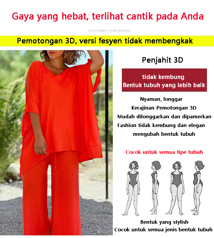 【diskon waktu terbatas】Pakaian baju lengan panjang, celana pinggang elastik kaki lurus, kain kualitas tinggi