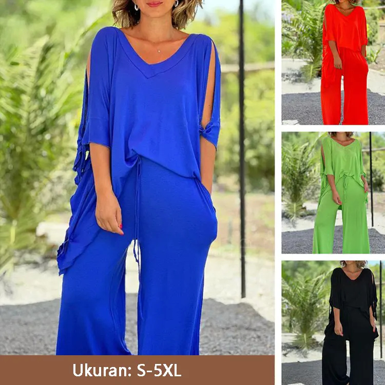 34 Menit LaluSet Atasan dan Elana Katun Modal V-neck Wanita - beli satu gratis satu(2 sets)