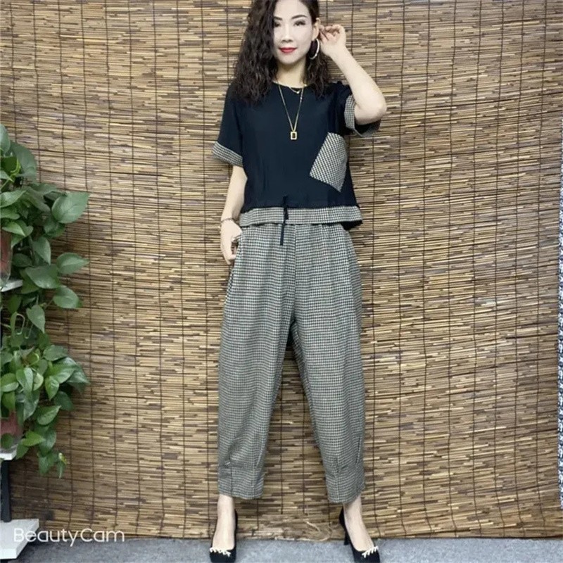 【diskon waktu terbatas】Pakaian baju lengan panjang, celana pinggang elastik kaki lurus, kain kualitas tinggi