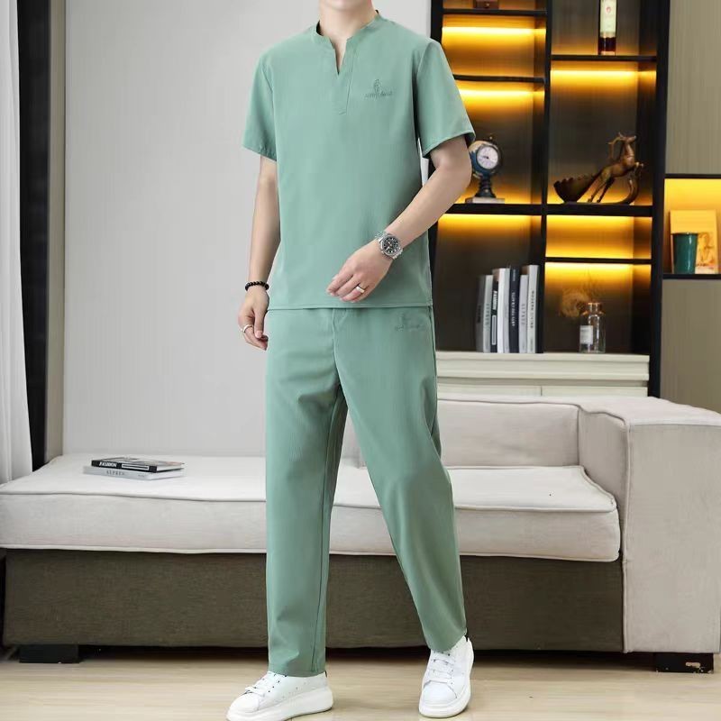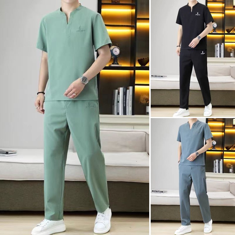 【diskon waktu terbatas】Pakaian baju lengan panjang, celana pinggang elastik kaki lurus, kain kualitas tinggi