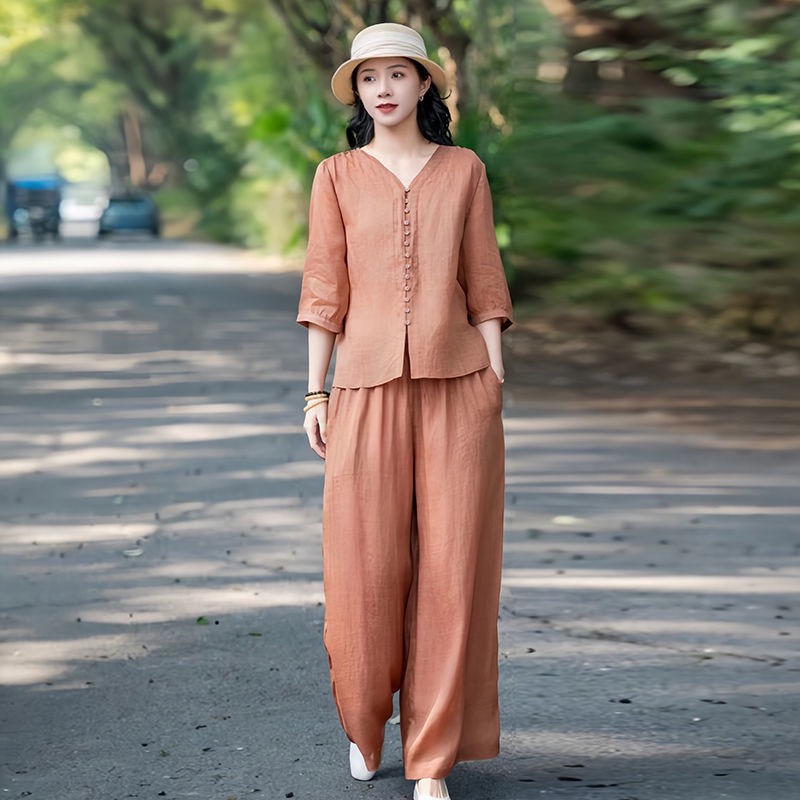 55 Menit LaluPakaian baju lengan panjang, celana pinggang elastik kaki lurus, kain kualitas tinggi - beli satu gratis satu(2 sets)