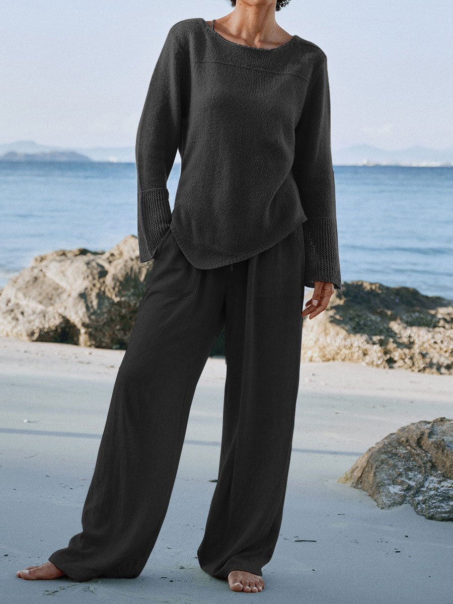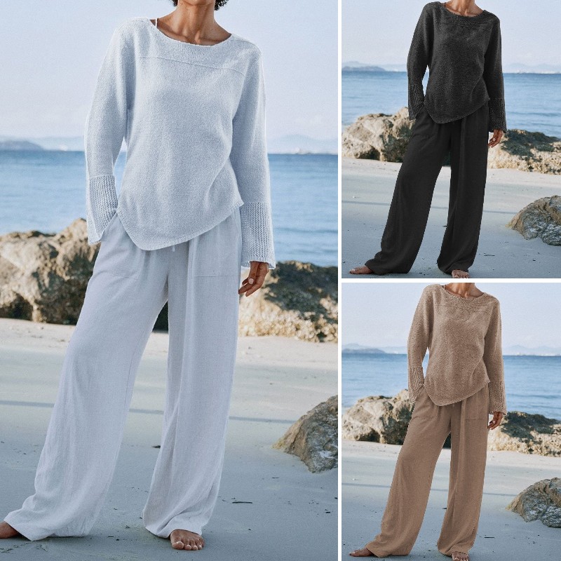 【diskon waktu terbatas】Pakaian baju lengan panjang, celana pinggang elastik kaki lurus, kain kualitas tinggi
