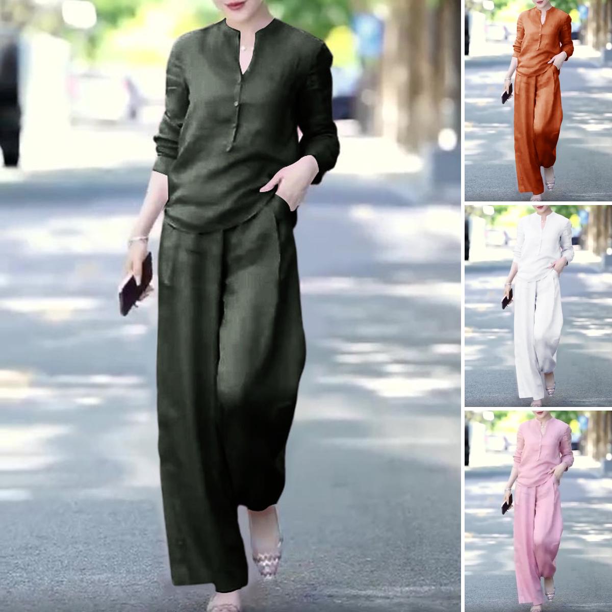 【diskon waktu terbatas】Pakaian baju lengan panjang, celana pinggang elastik kaki lurus, kain kualitas tinggi