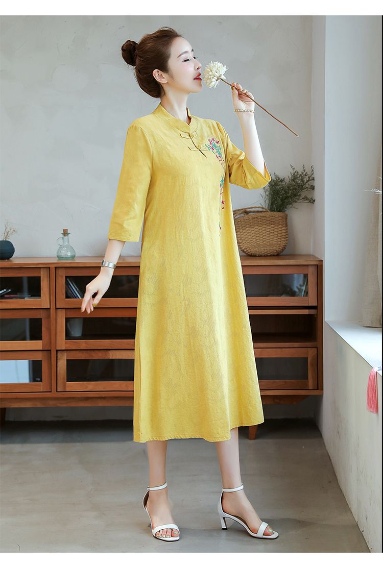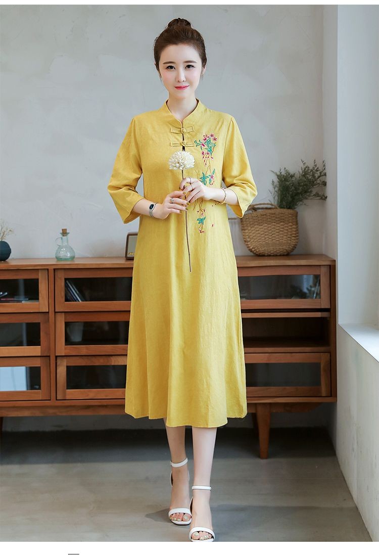 2 Menit LaluRok panjang katun dan linen yang dirancang dengan tangan, kain katun dan linen alami, bernapas dan tidak alergi, sangat sejuk di musim panas, cocok untuk pakaian sehari-hari, - Beli satu【379000】