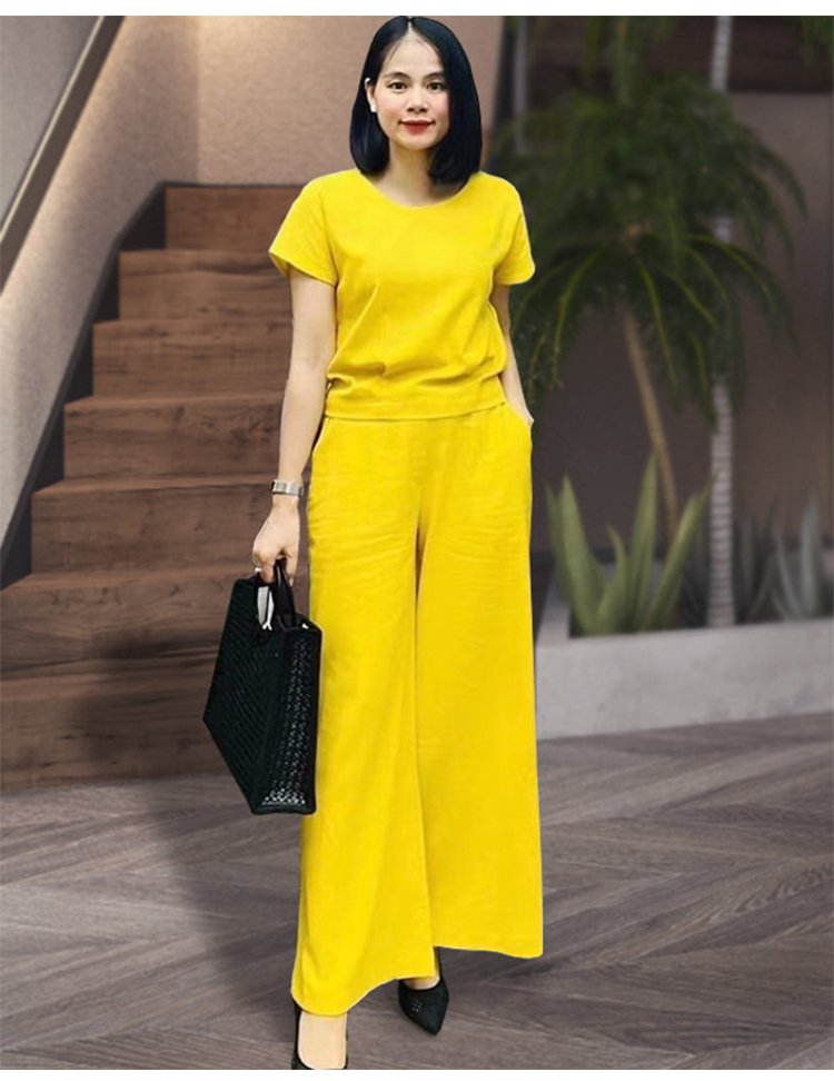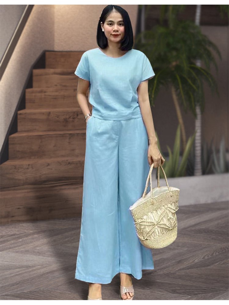 34 Menit LaluSet 2 potong celana lebar kaki katun dan linen warna solid gaya Jepang yang elegan