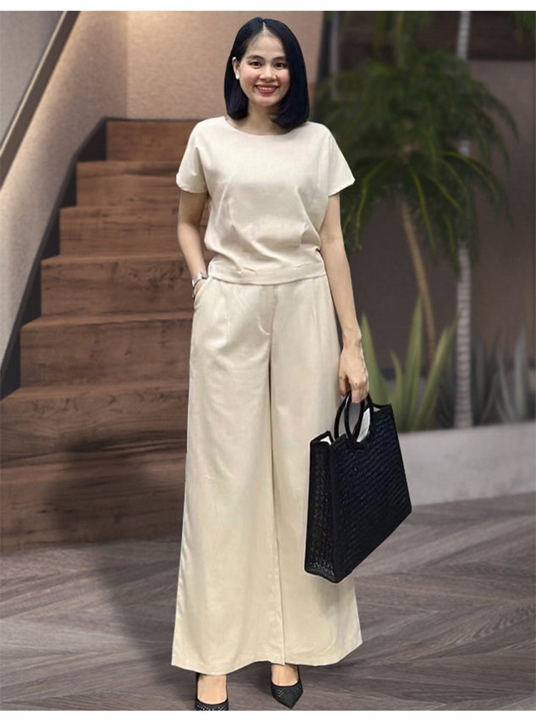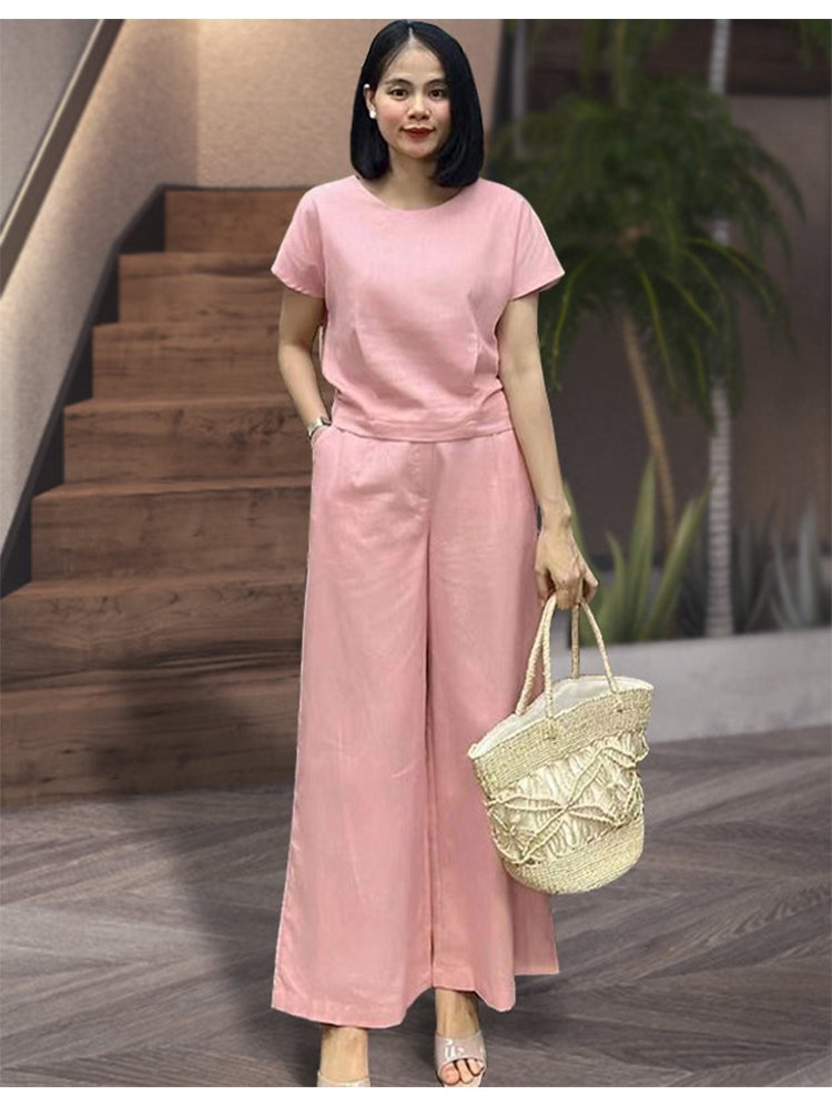 27 Menit LaluSet 2 potong celana lebar kaki katun dan linen warna solid gaya Jepang yang elegan