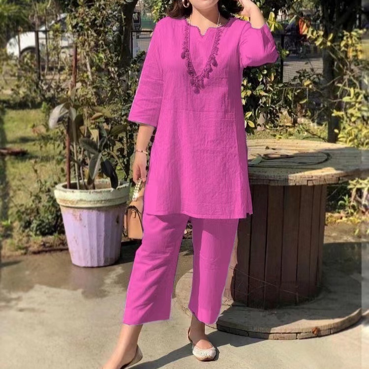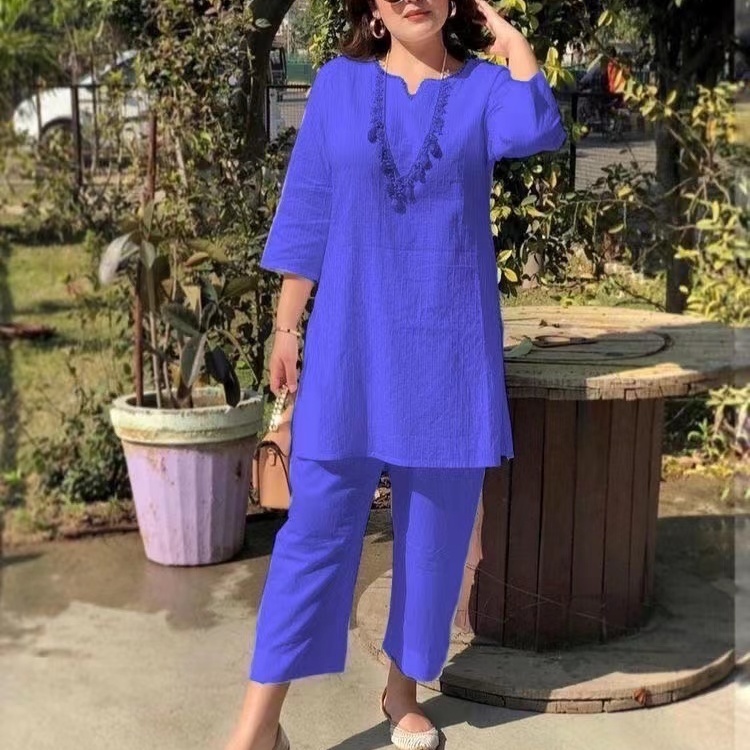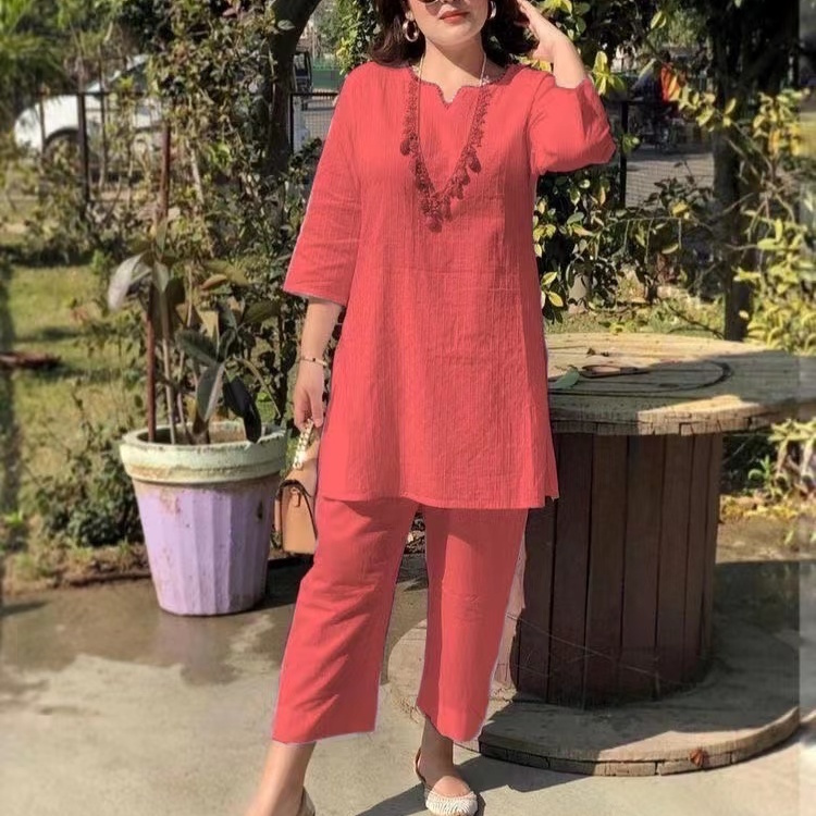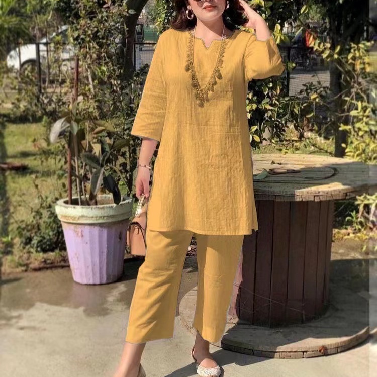 【diskon waktu terbatas】Pakaian baju lengan panjang, celana pinggang elastik kaki lurus, kain kualitas tinggi