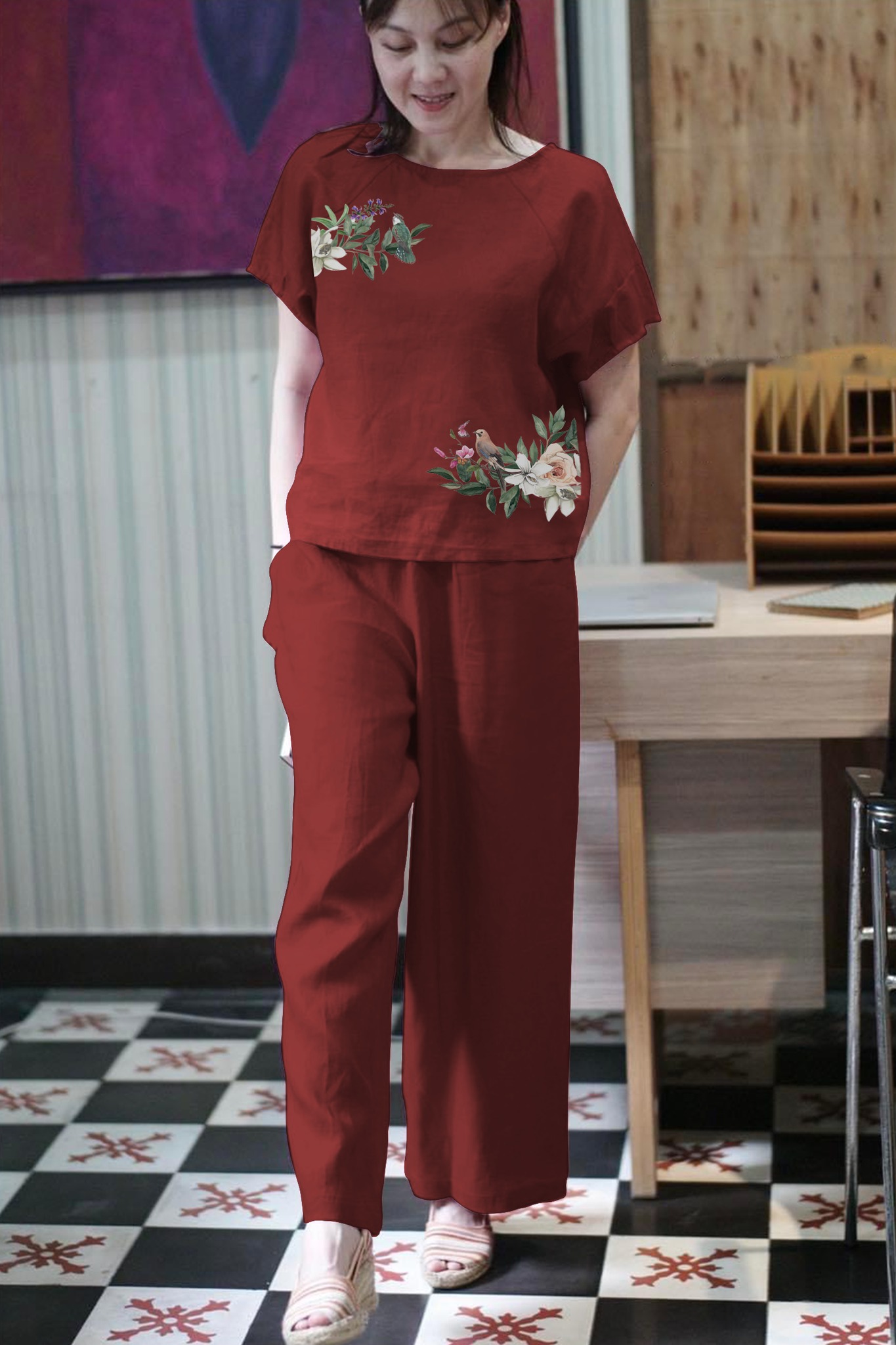 8 Menit Lalu【diskon waktu terbatas】Pakaian baju lengan panjang, celana pinggang elastik kaki lurus, kain kualitas tinggi - membeli satu set