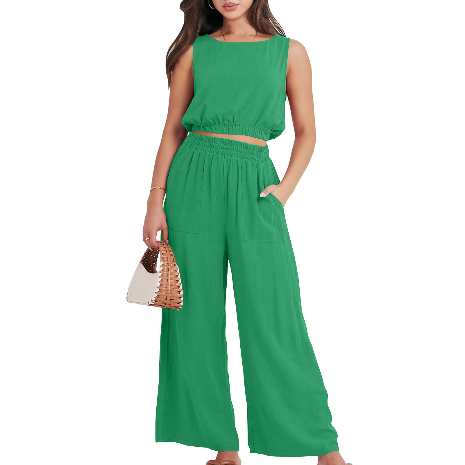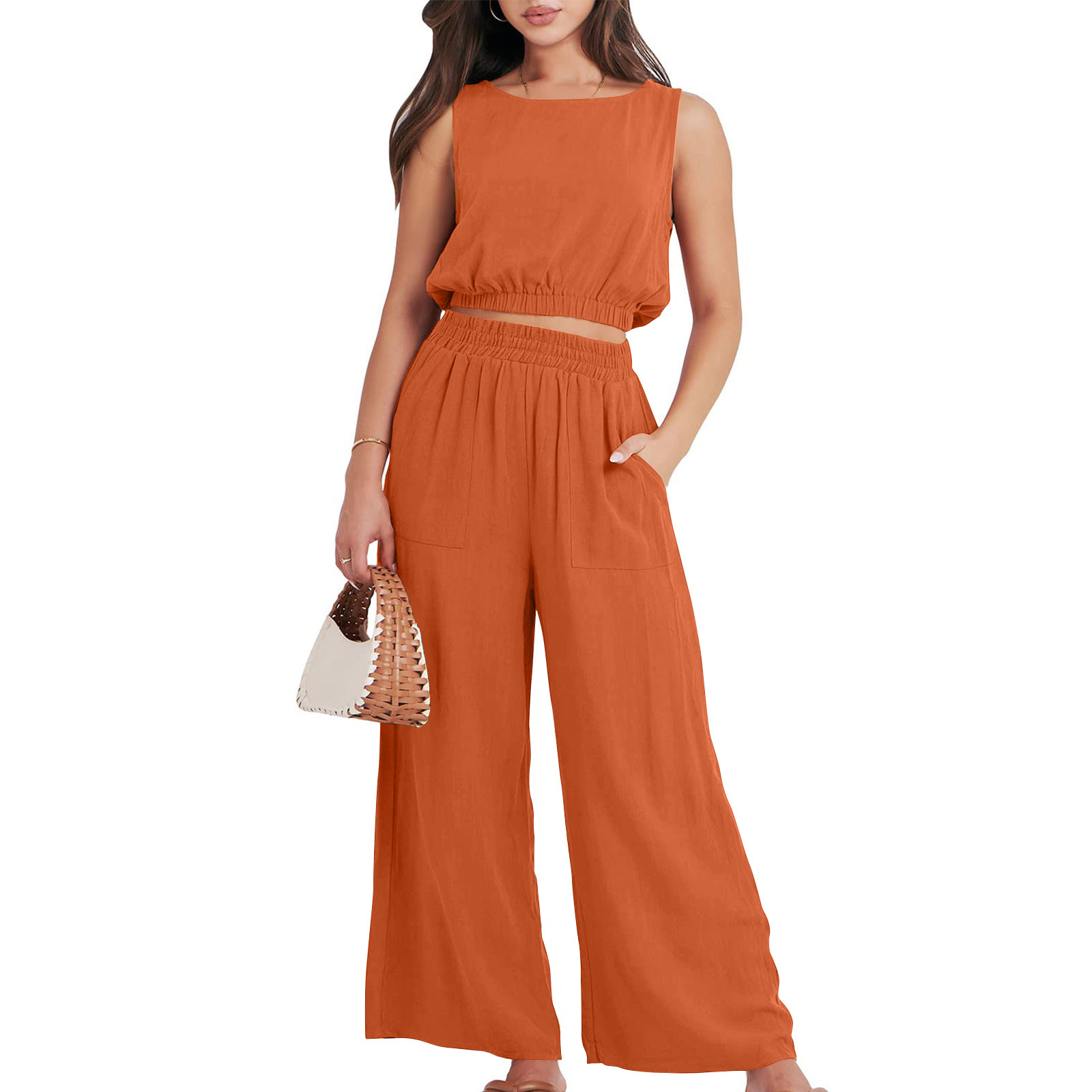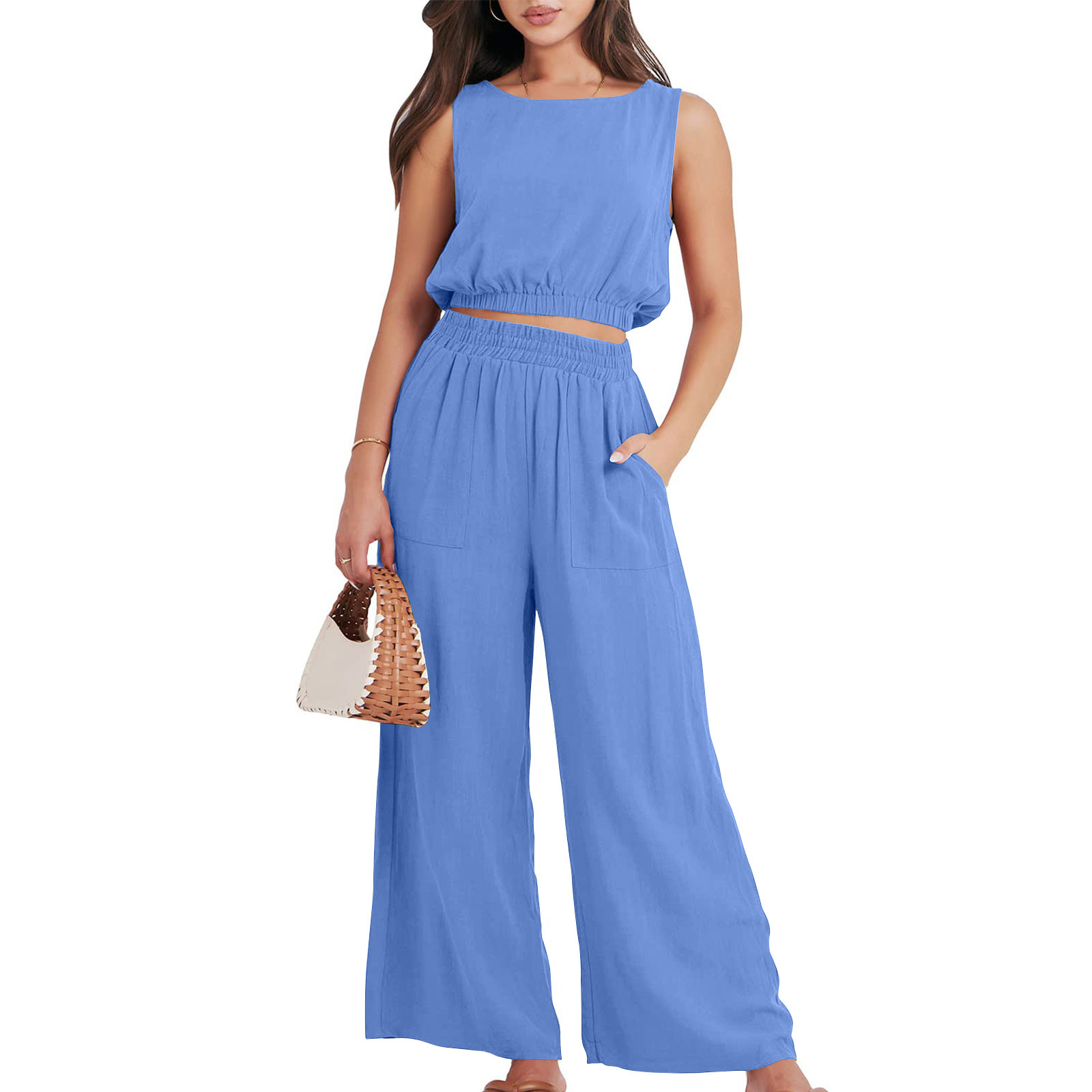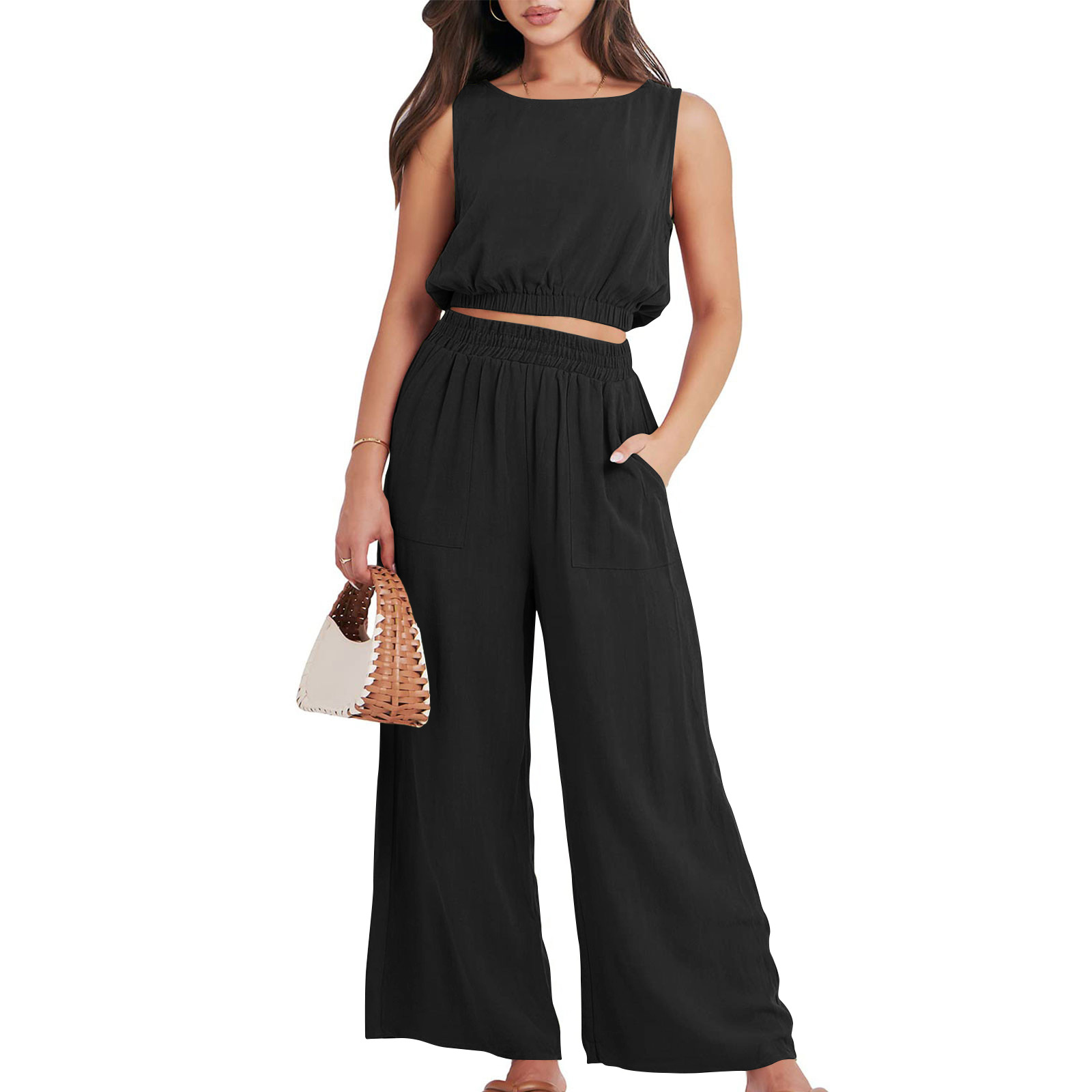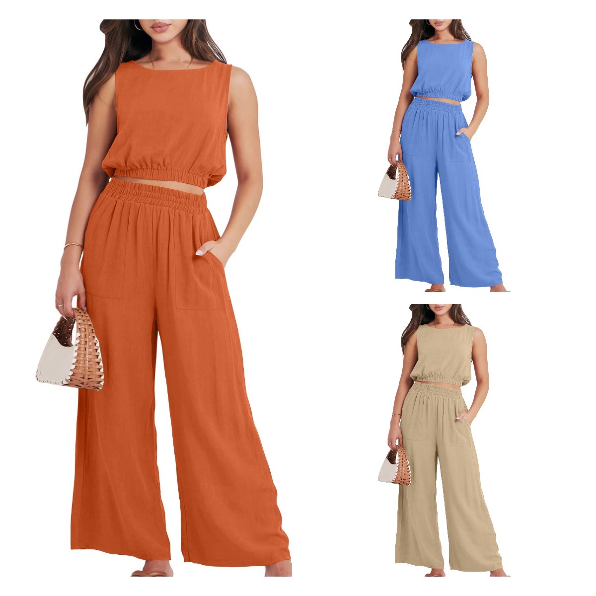2 Menit LaluTemperamen atasan tanpa lengan dan set celana dua potong - beli satu gratis satu