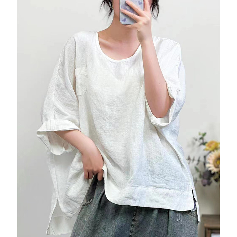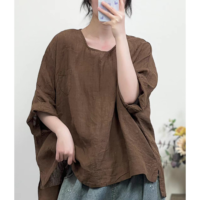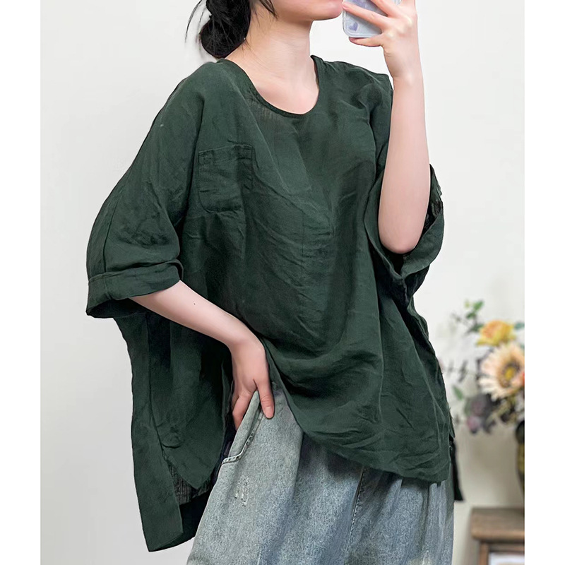 8 Menit LaluAtasan Linen Setengah Lengan Pullover Leher Bulat - beli satu gratis satu