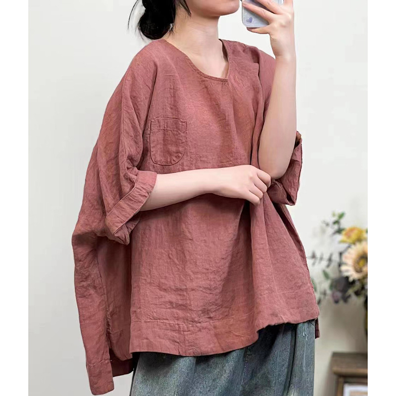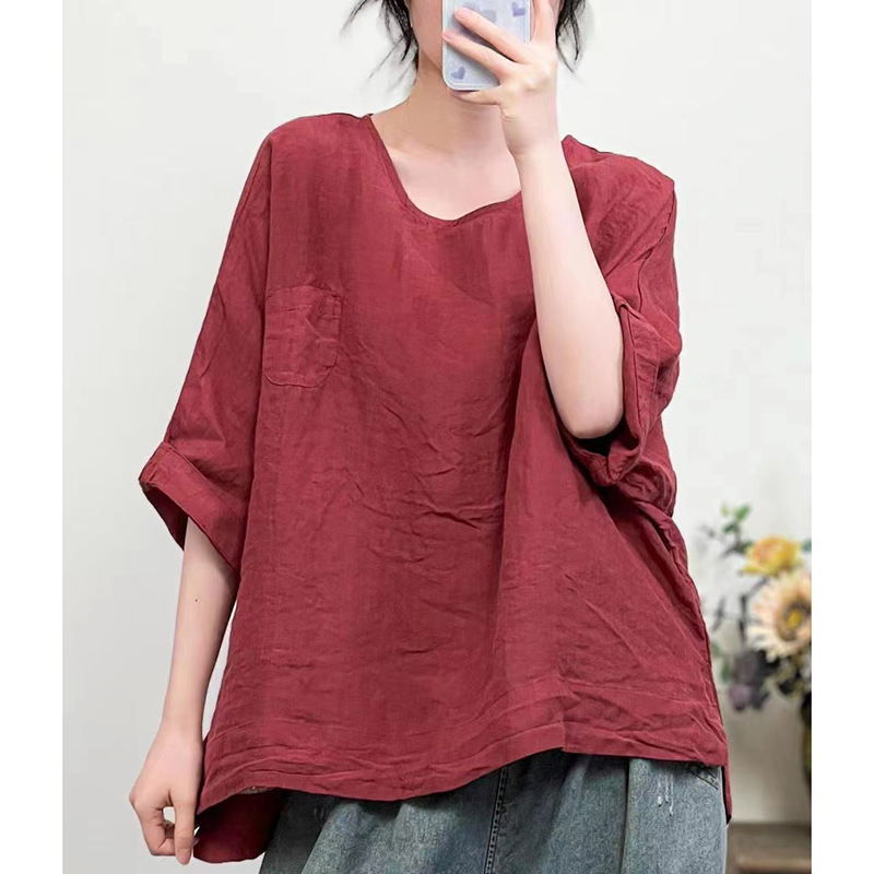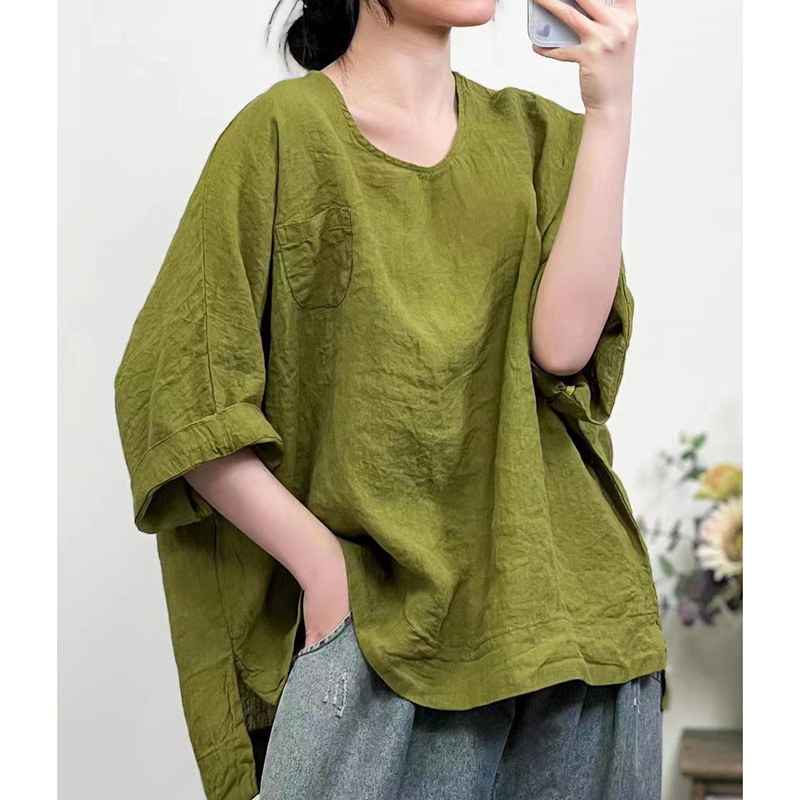 55 Menit LaluAtasan Linen Setengah Lengan Pullover Leher Bulat - beli satu gratis satu